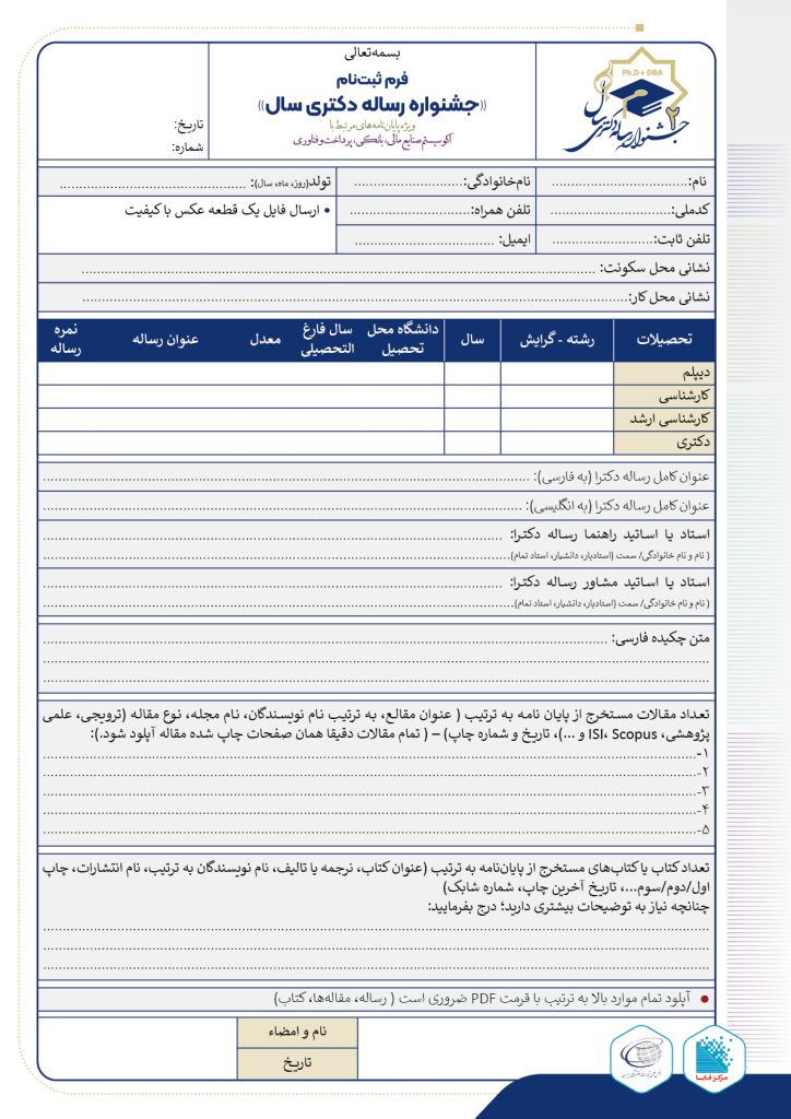 جشنواره رساله دکتری در دو دسته Ph.D و DBA برگزار می شود: