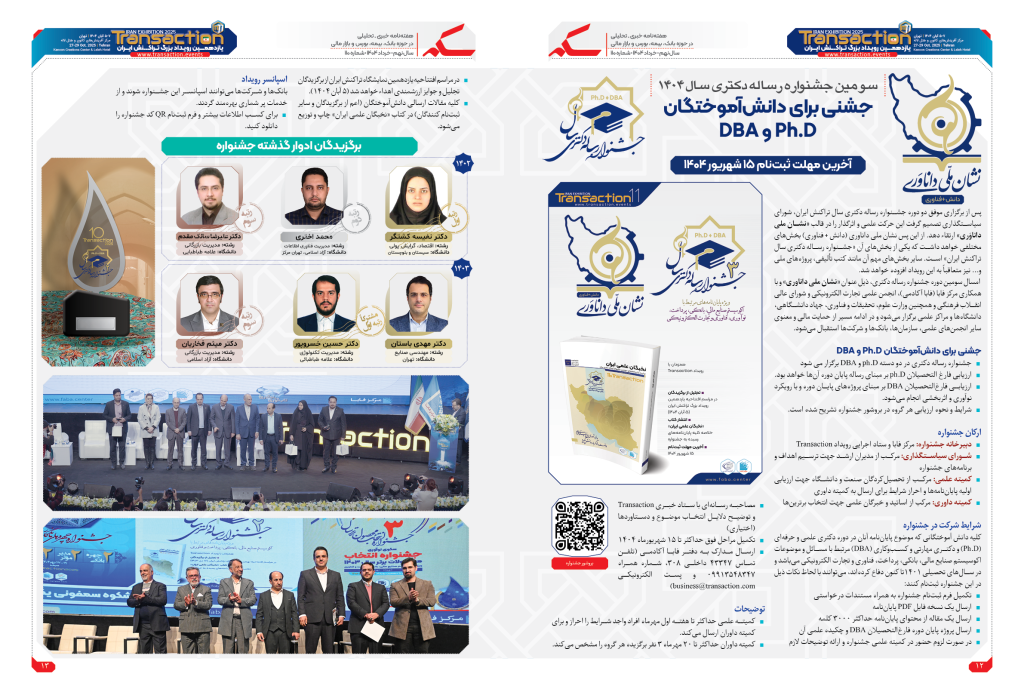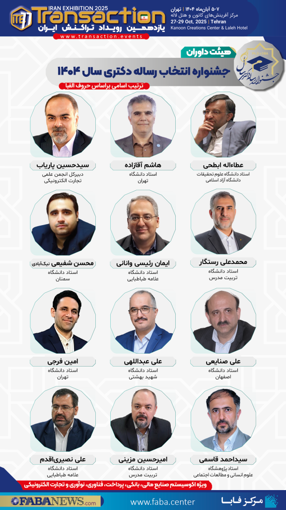 اعضای هیات داوران سومین جشنواره رساله دکتری (Ph.D+DBA) سال ۱۴۰۴ که همزمان با یازدهمین رویداد بزرگ تراکنش ایران (۷-۵ آبان ۱۴۰۴) برگزار می شود، معرفی شدند.